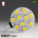 Ampoule à Culot G4 de couleur Blanc Chaud ou blanc froid , 30mm de diàmètre pour être montée sur spot directionnel. L'éclairage sur une face est composé de 10Led 5050 SMD .