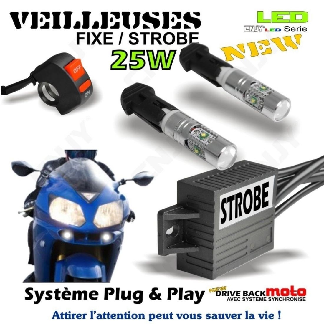 Contactez nous pour une version personnalisable, nous sommes fabricant, et nous répondrons rapidement à votre demande. Composée de 2 ampoules FLICK/FLACK très performants et d'un module DRIVEBACK, ce kit LED DBM à ampoule de veilleuse fixe & stroboscopique pour moto, Plug and Play* est parfaitement adaptée pour être installé sur n'importe quel modèle de moto..