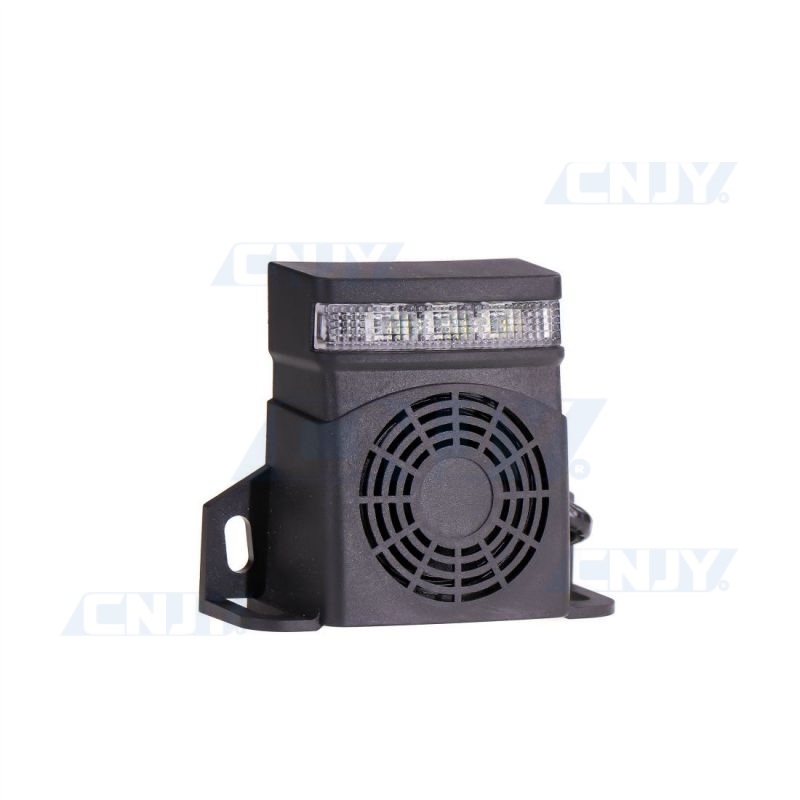 Cet avertisseur sonore est un bip puissant pouvant servir à la fois d'alarme de recul sur chariot élévateur, camion, dépanneuse, véhicule de chantier, mais également d'avertisseur sonore sur machine outil, engin de chantier, grue, pelleteuse,... . Nous l'avons combiné à un avertisseur visuel de signalisation flash à led blanc puissant.