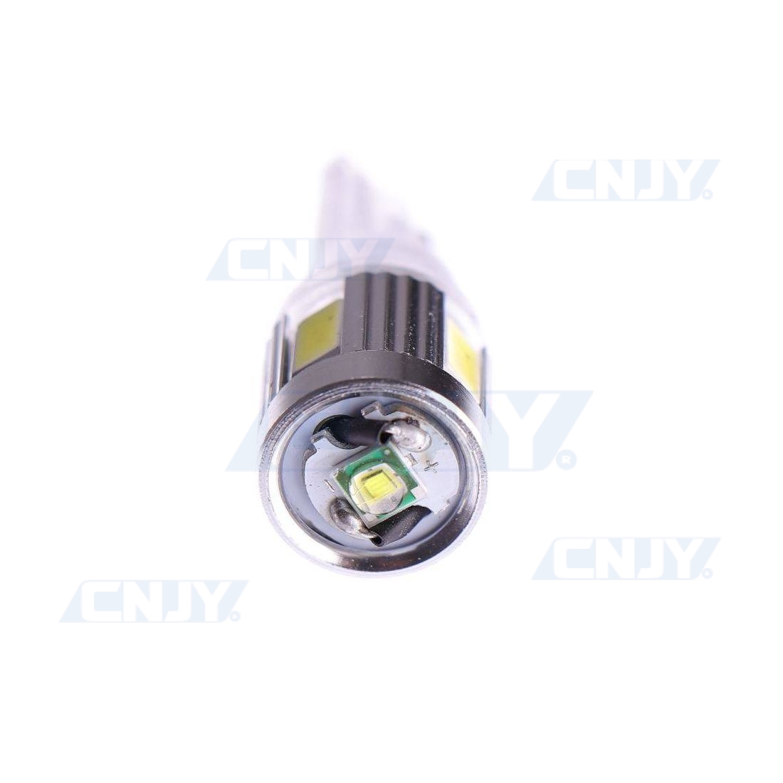 Cette Ampoule led T10 W5W compacte est idéale pour obtenir de la puissance là ou il y a peut de place. Convient pour veilleuses, ampoule de plafonnier, éclairage de plaque, répétiteurs latéraux (en orange)... . Ce modèle ne dispose pas de soutient canbus, à donc une faible consommation en énergie pour un pouvoir lumineux maximum grâce à sa led Cree 3W frontale et ses 4 led latérales OSRAM 5630 puissantes. Eclairage à 360°, corps en aluminium et grande longévité.